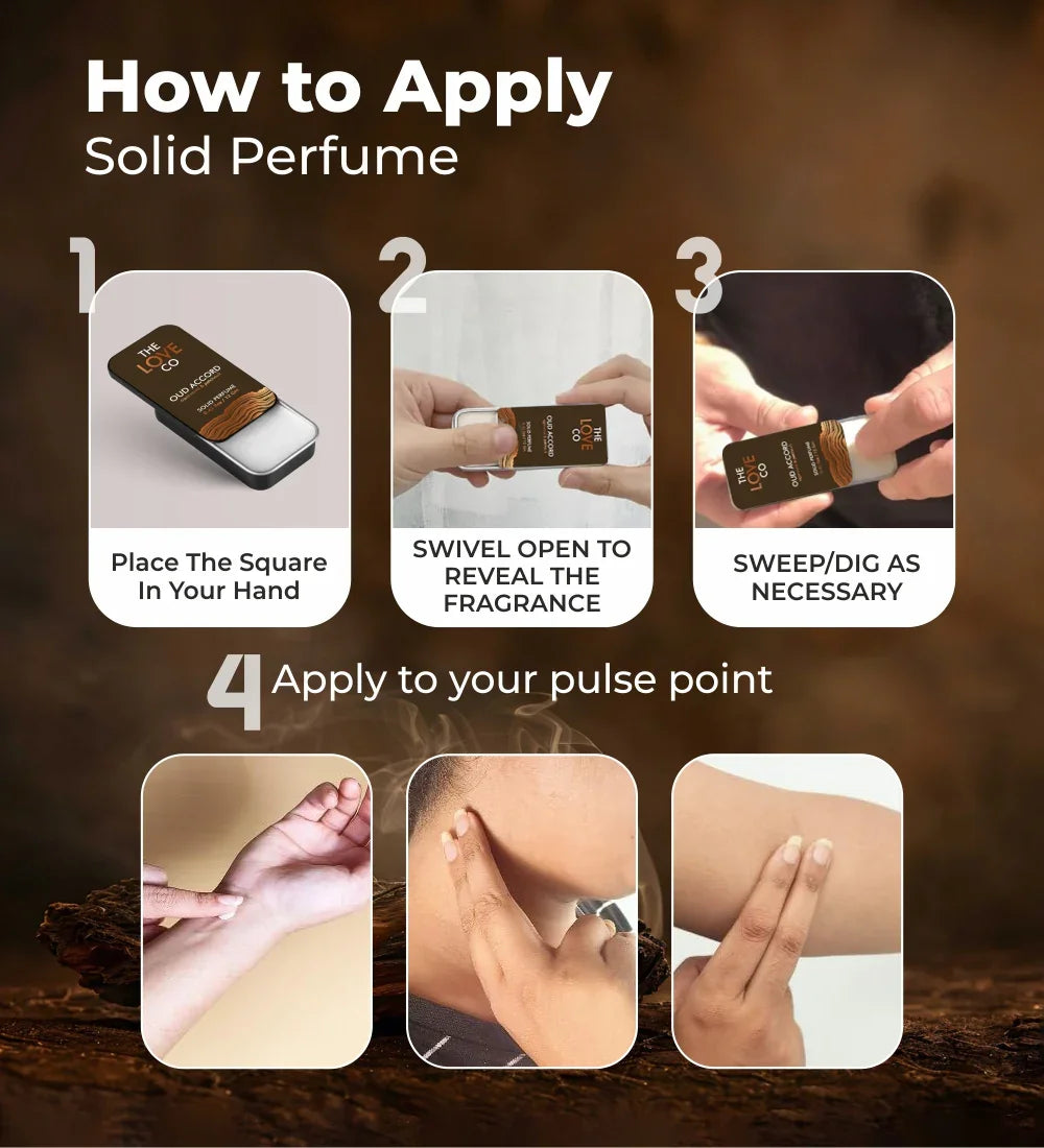 Discover the allure of The Love Co.'s Oud Accord Solid Perfume, a luxurious and captivating fragrance in a compact, travel-friendly form. This rich, deep scent features the iconic essence of oud, harmoniously blended with subtle notes of amber, spice, and woods, creating a warm and exotic fragrance that lingers all day. Perfect for those on the go, this solid perfume is easy to apply and ideal for touch-ups throughout the day or night. Its non-greasy formula melts effortlessly into the skin, leaving behind a sophisticated and long-lasting aroma. Embrace the elegance of oud and elevate your everyday with this timeless fragrance.