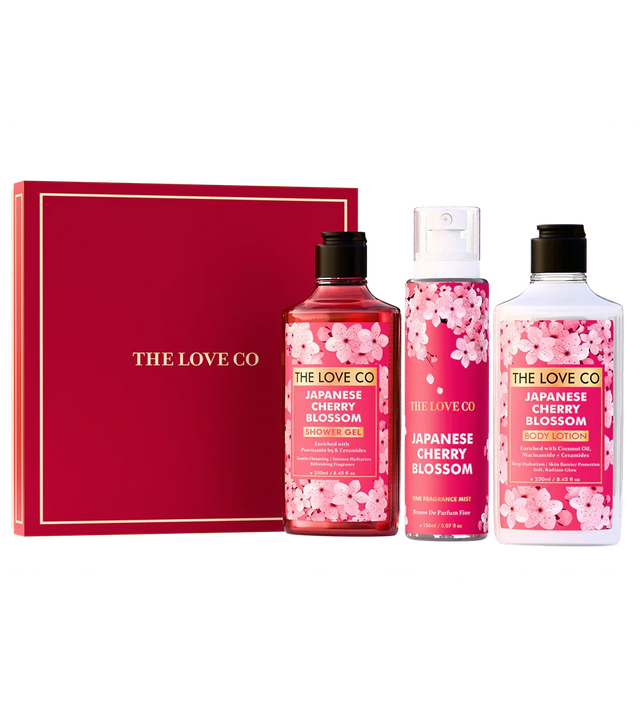 The Japanese Cherry Blossom Gift Box brings together a refreshing body mist, a silky body lotion, and a soft shower gel, all infused with the elegant fragrance of blooming cherry blossoms. The shower gel gently cleanses, the lotion deeply moisturizes, and the mist leaves a light, lingering floral scent that uplifts every moment. Thoughtfully curated for gifting or everyday self-care, this trio captures the essence of freshness, femininity, and graceful beauty.